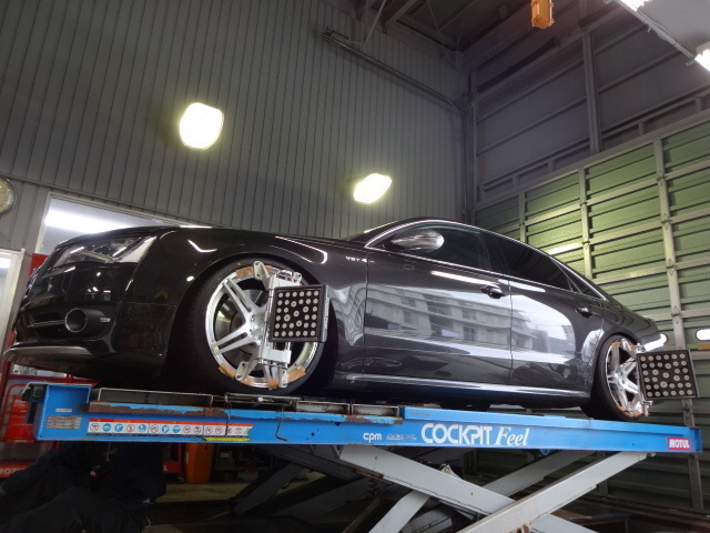2015年4月8日 ツイート クリックで画像を拡大 メーカー:アウディ いつも色々と仕上げさせて頂いているオーナー。 今回もノーマルから イロイロと“仕上げ”させてもらいました(嬉 クリックで画像を拡大 BC FORGED 21inch リムはポリッシュでオーダー リアディスクは最大コンケーブで装着。。 BC FORGEDで21inchは国内初入荷の装着です。 クリックで画像を拡大 クリックで画像を拡大 iiDリンクでロワリング 今回はリンクをチョット加工してみました。 微調整を繰り返して 車高の設定を煮詰めました。 クリックで画像を拡大 “仕上げ”はもちろん“4輪アライメント”です。 車高をイジったら 4輪アライメントは必須項目。 “ダイナミック”をベースに車高設定してアライメントしました。