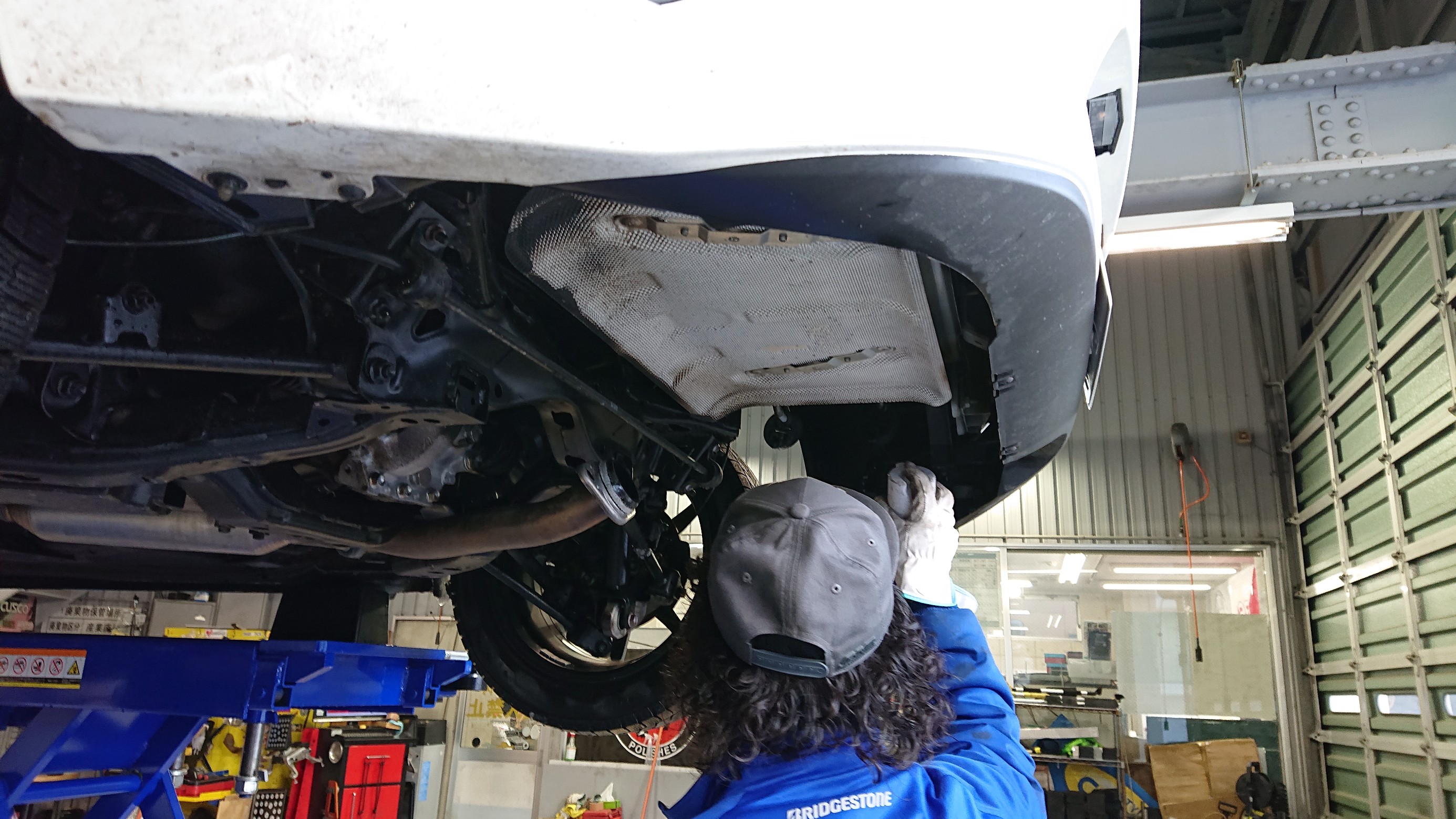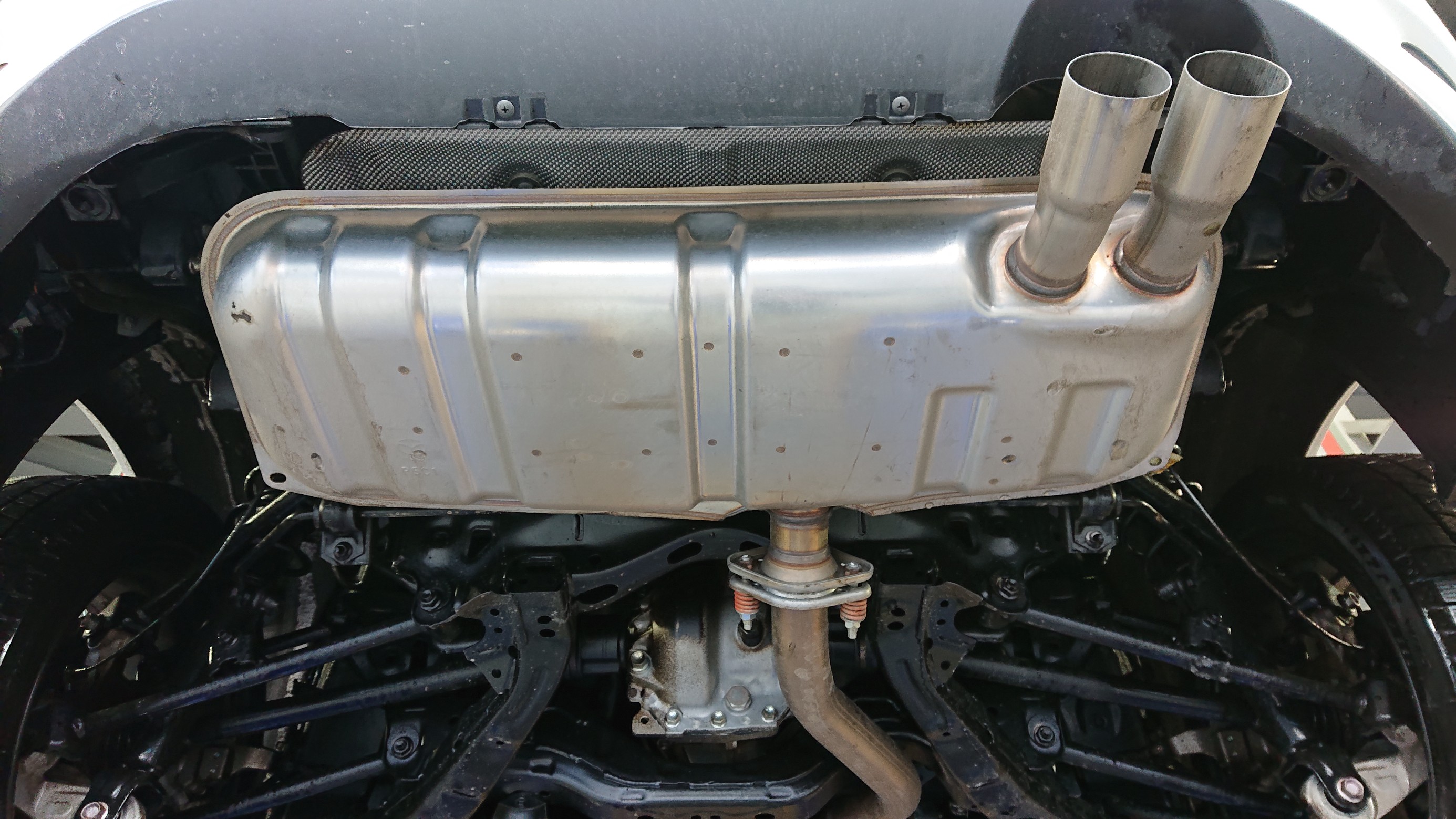 純正マフラーを取り外します。