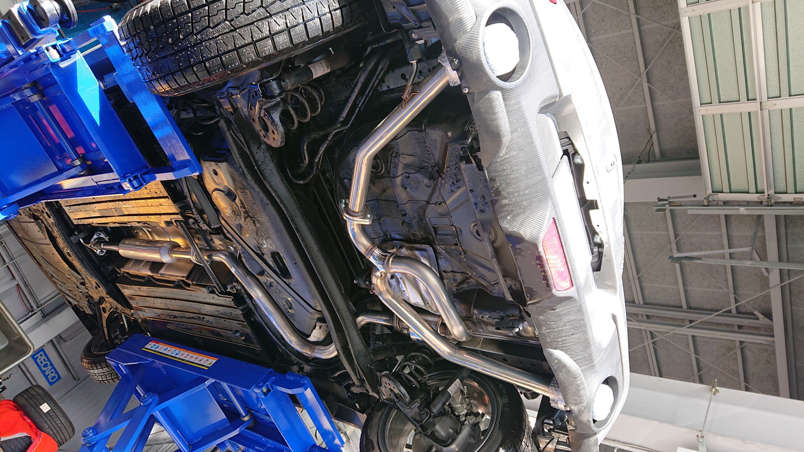 純正マフラーを取外します。
