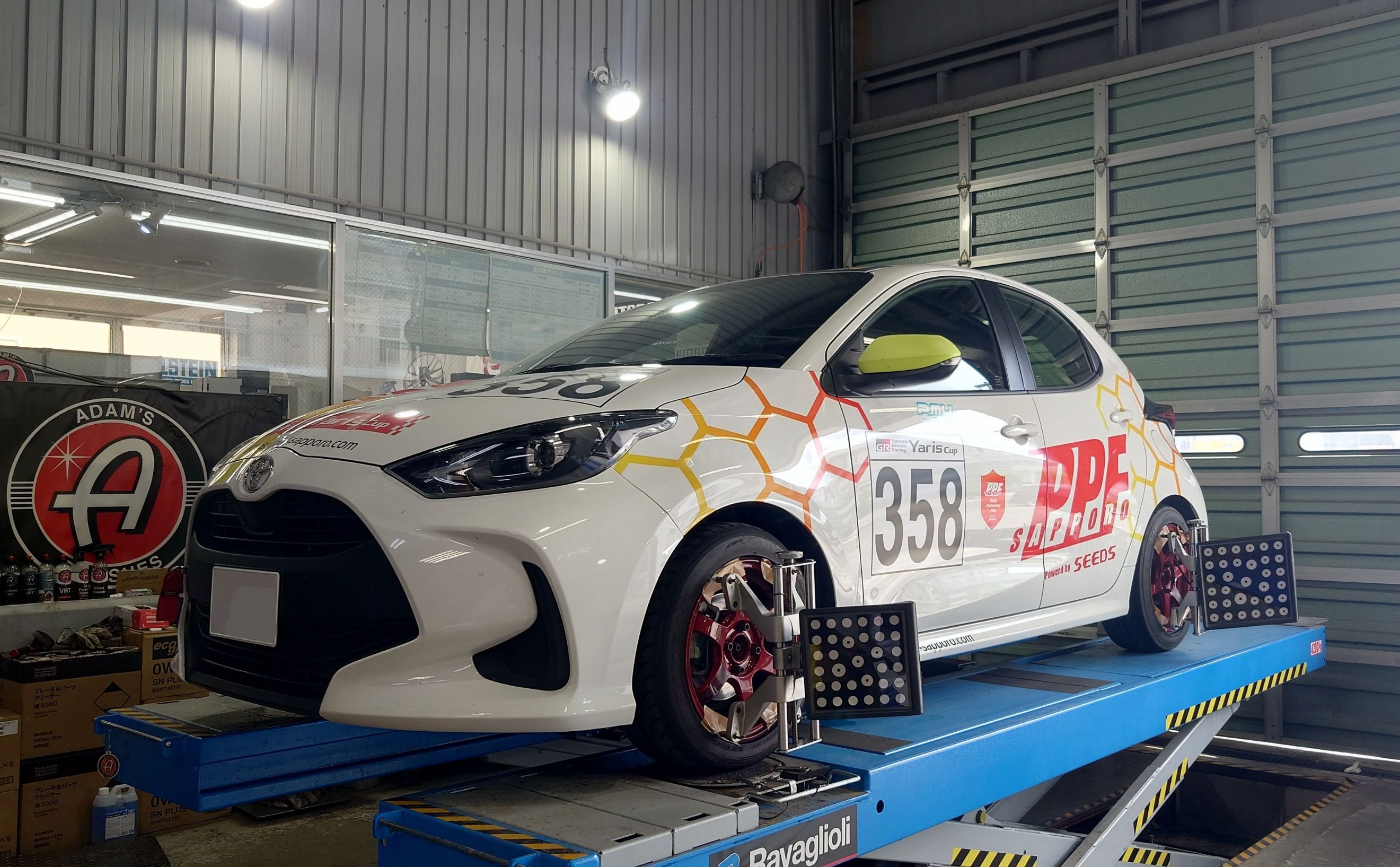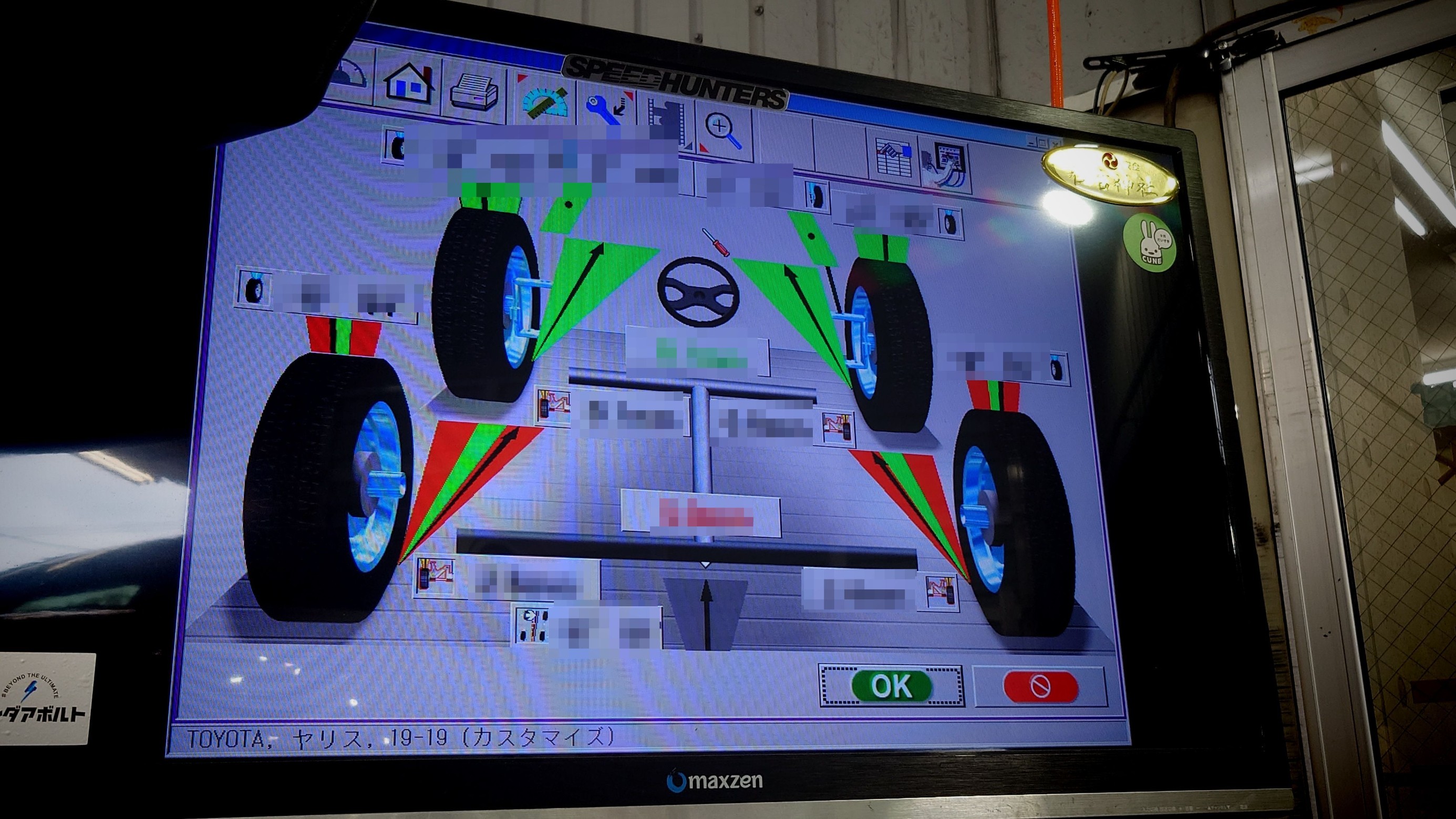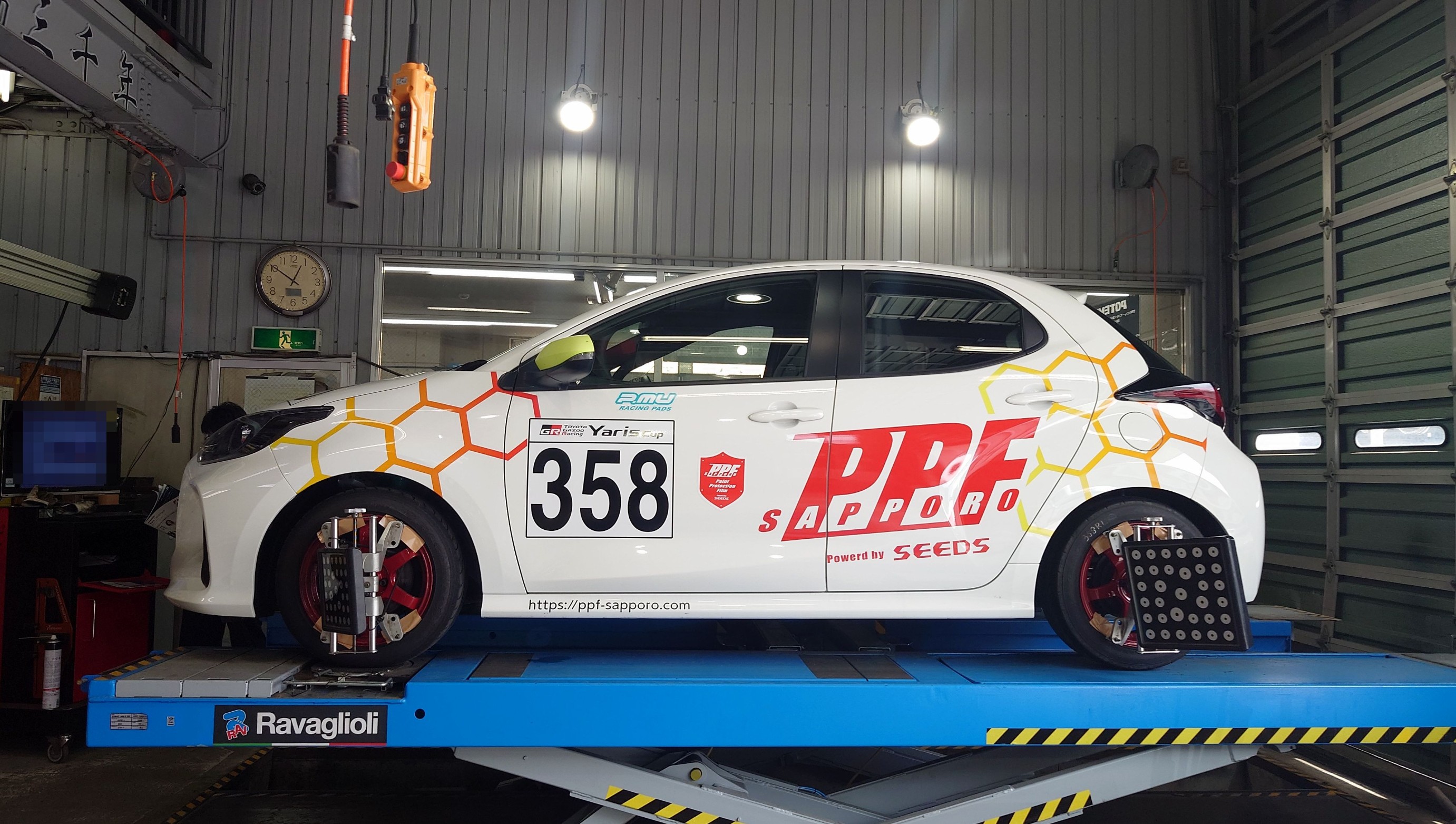 4輪アライメント作業を開始。