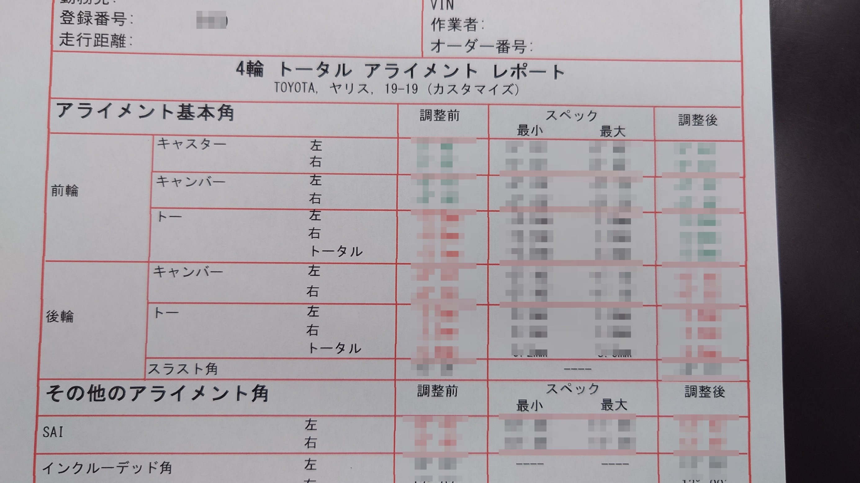 4輪アライメントの測定を行ってから