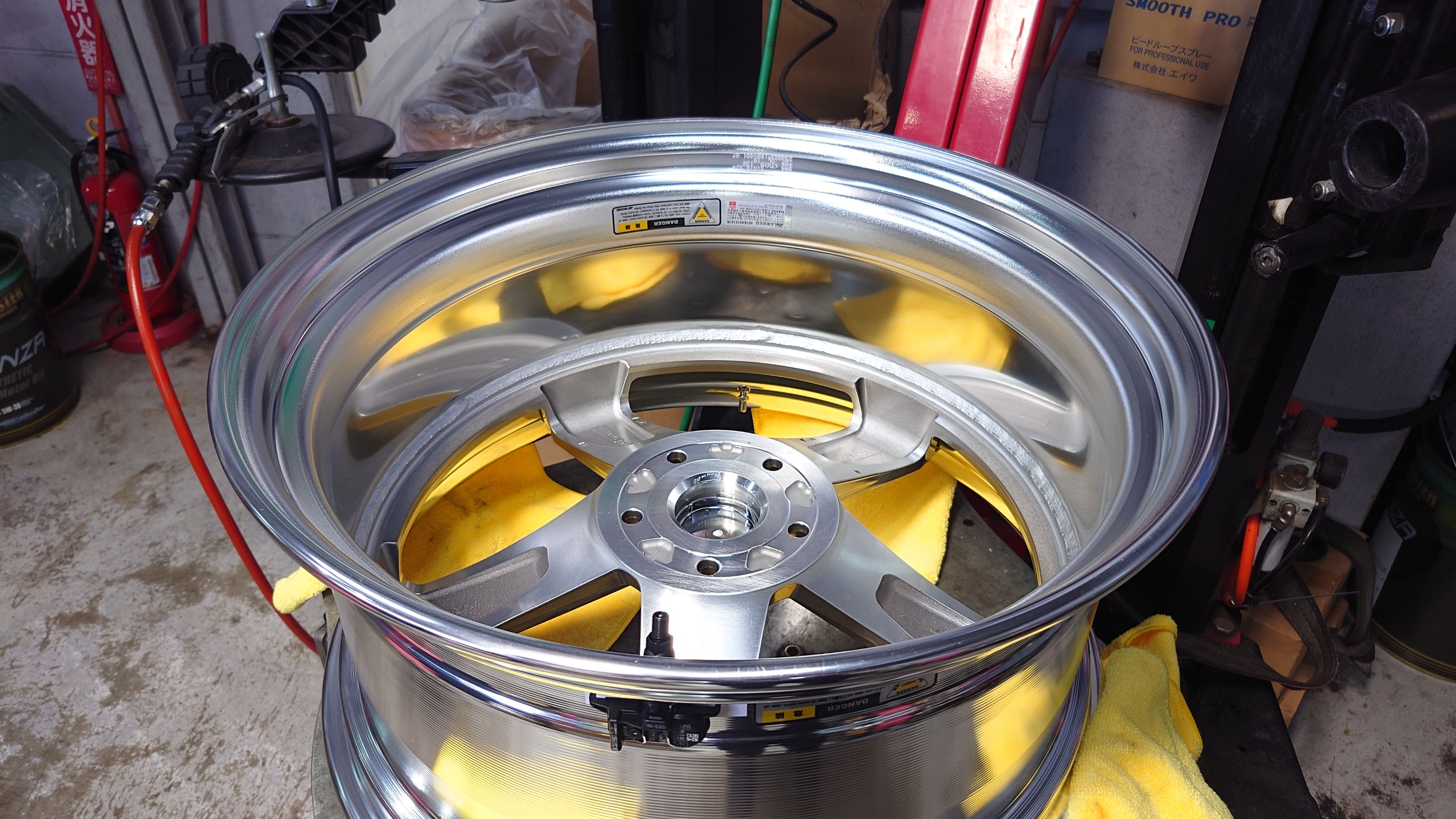ホイールバランスの調整を作業。