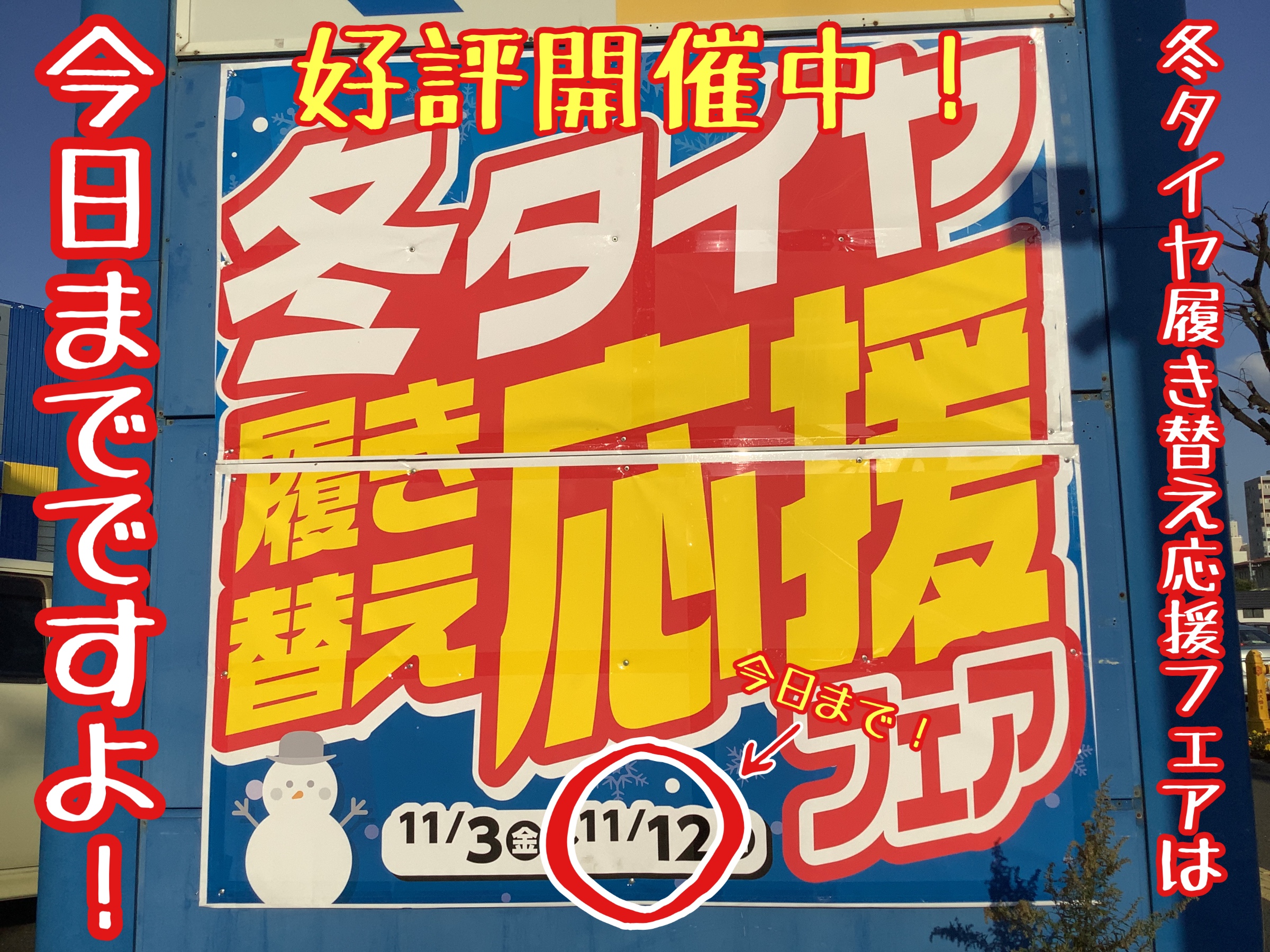 2023年11月12日 ツイート こんにちは! 『スタイルコクピットフィール』です! 好評開催中の 『冬タイヤ履き替え応援フェア』は 今日、11月12日までですよ! スタッドレスタイヤはモチロン、 夏タイヤのご相談もお任せください! 皆様のご来店お待ちしてマース! Prev Next
