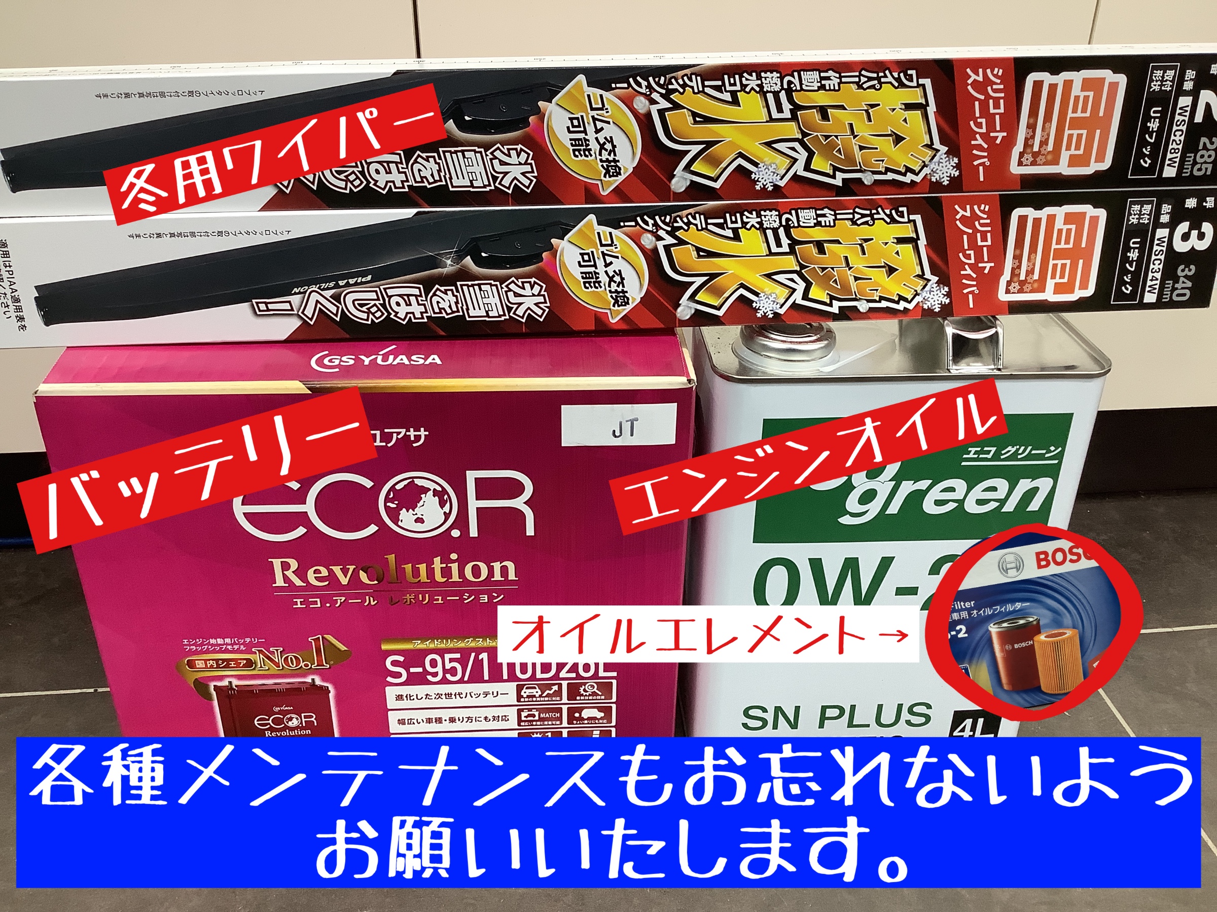 ワイパー、バッテリー、エンジンオイルなどなどの