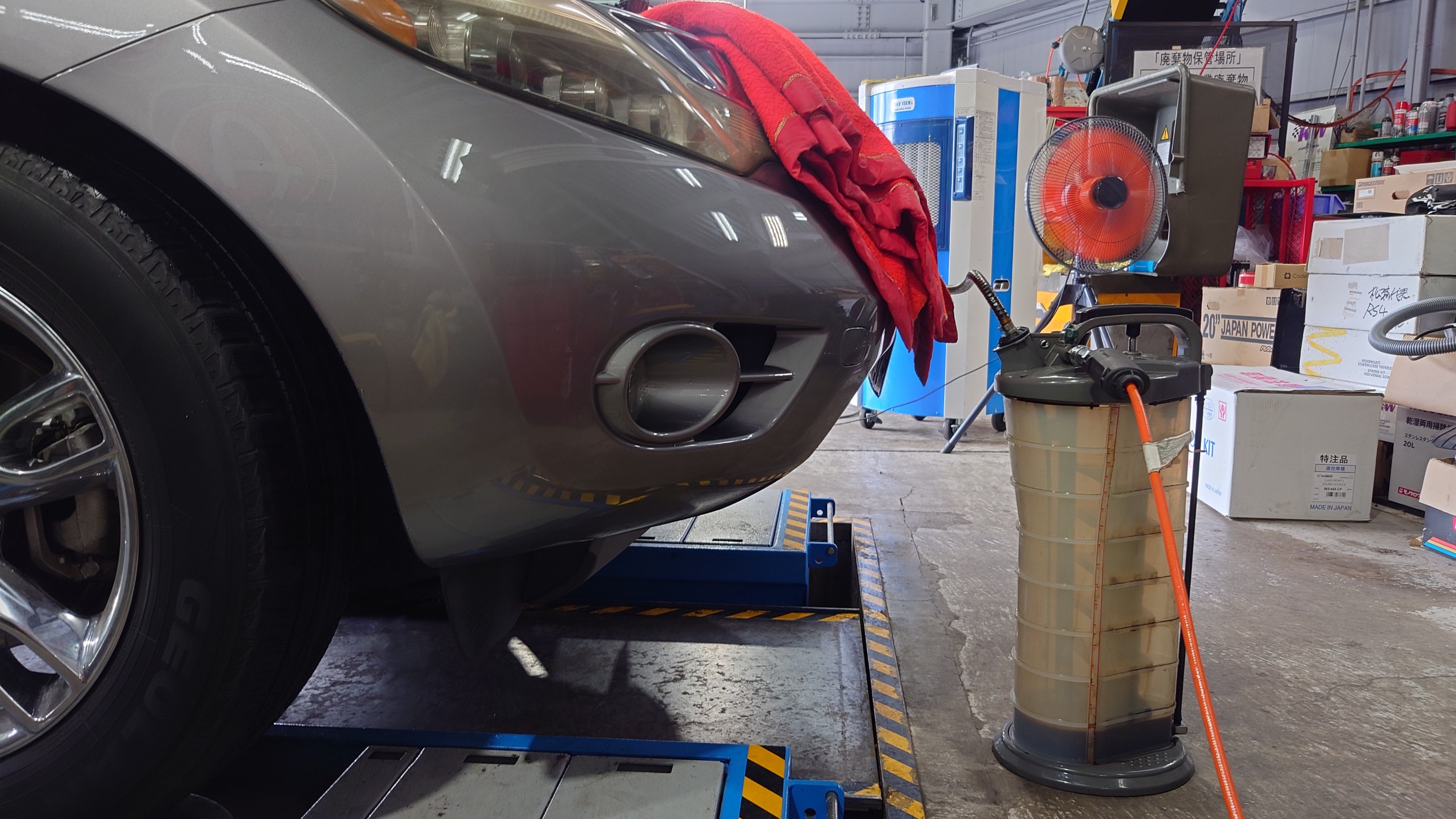 エンジンオイル交換作業を