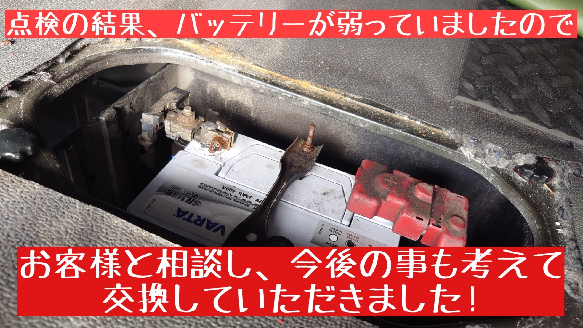 本日はバッテリーをバッテリーテスターで点検させていただいたところ