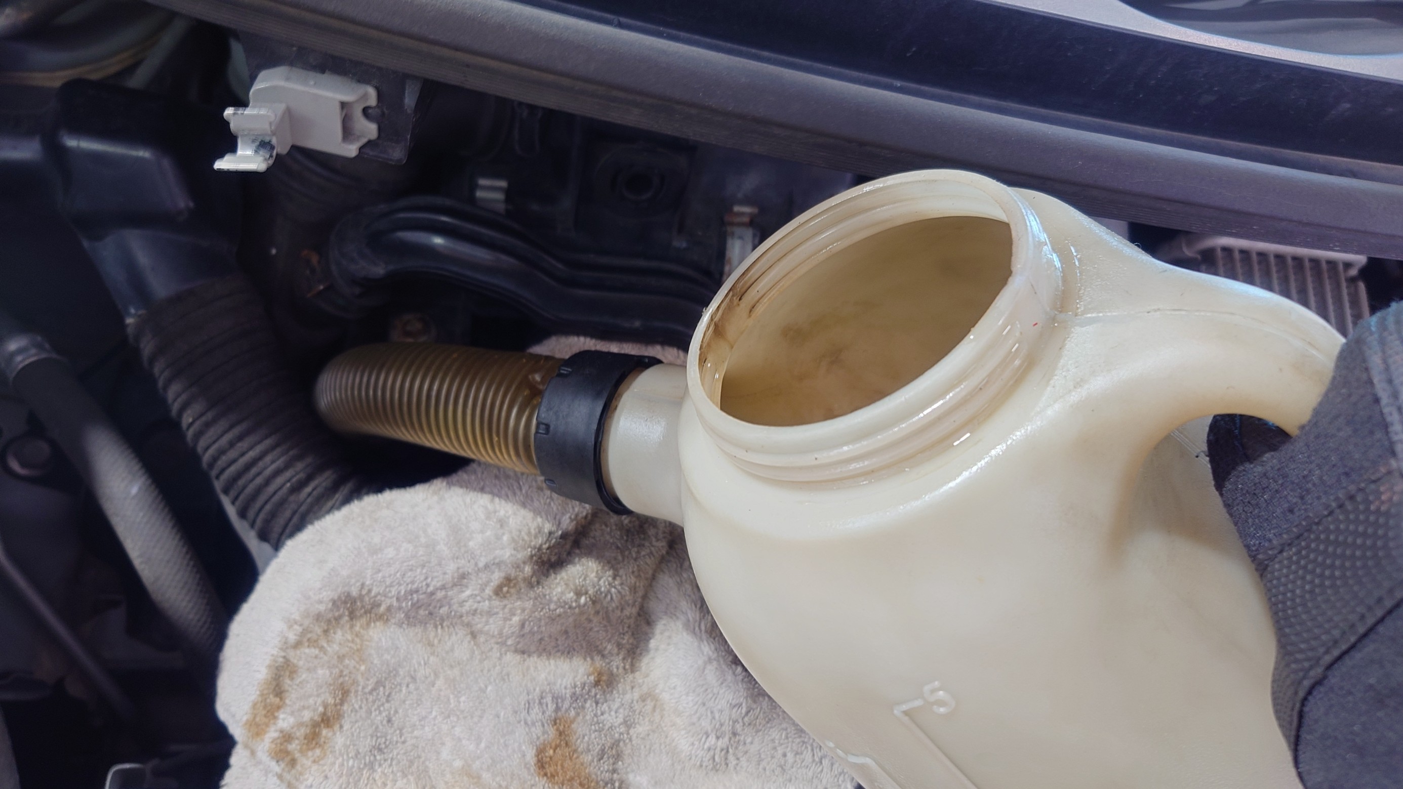 古いエンジンオイルを吸い取ります。