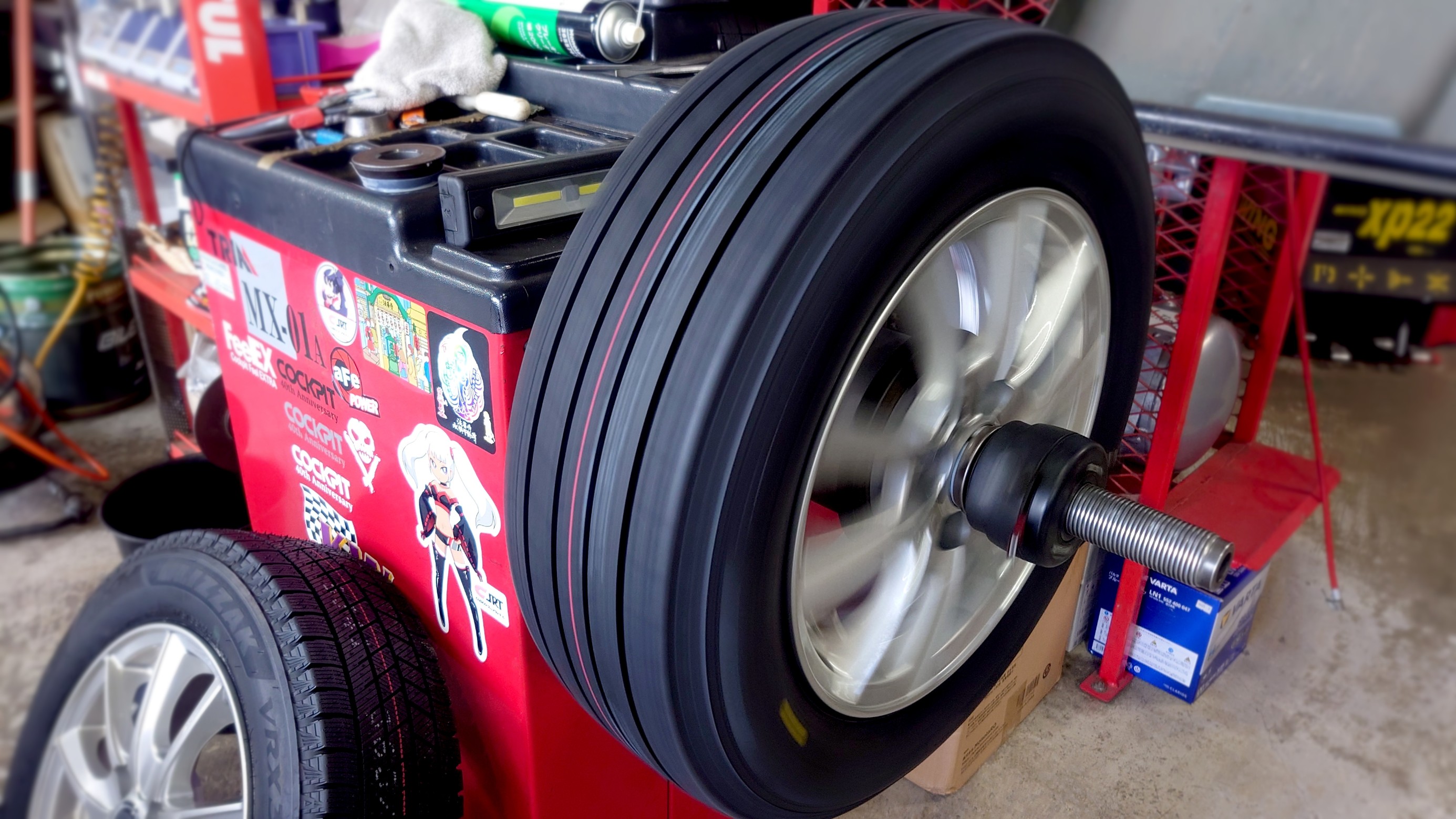 ホイールバランスの調整作業を行って