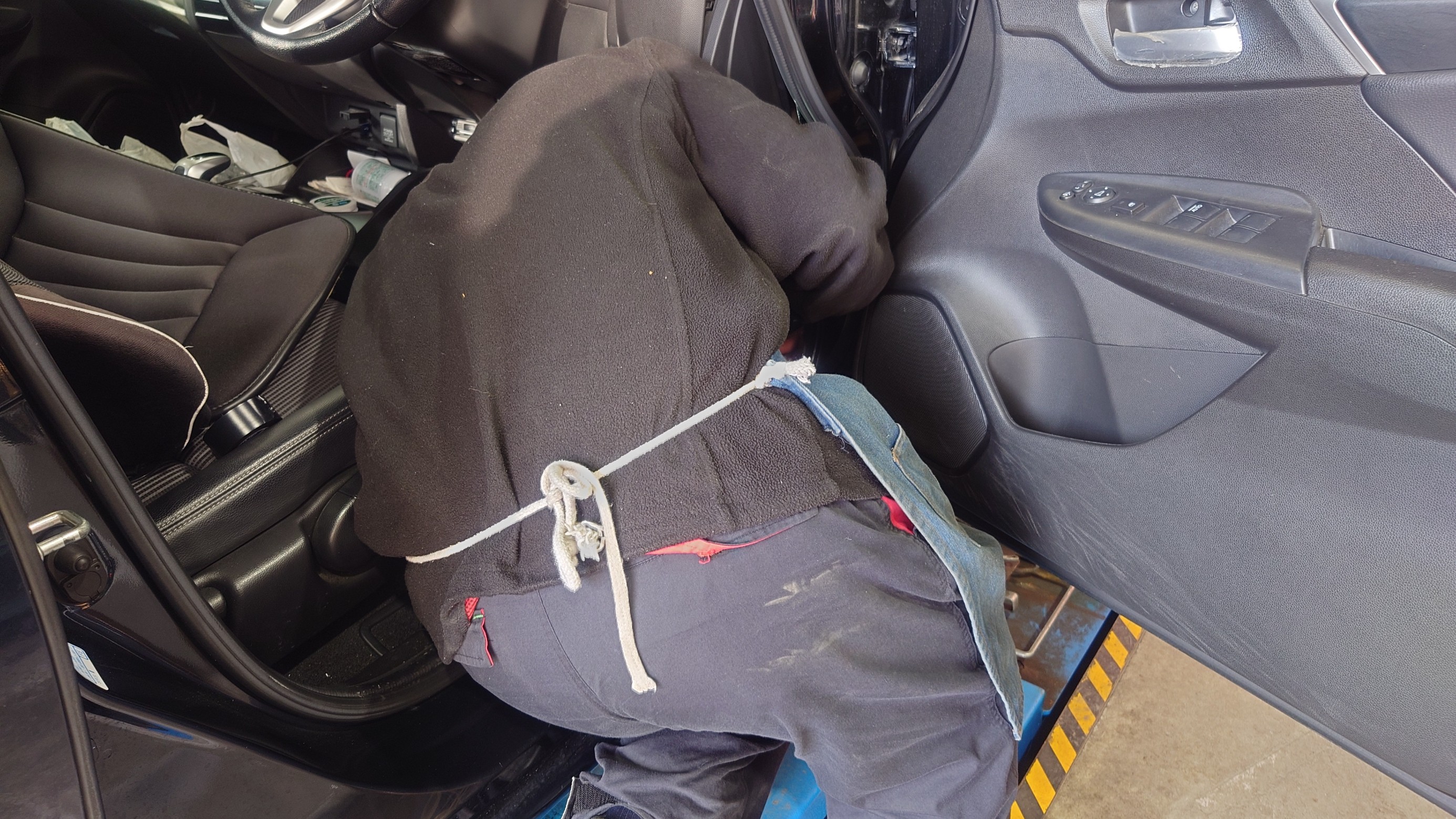 センサー送信機の取付作業と並行して