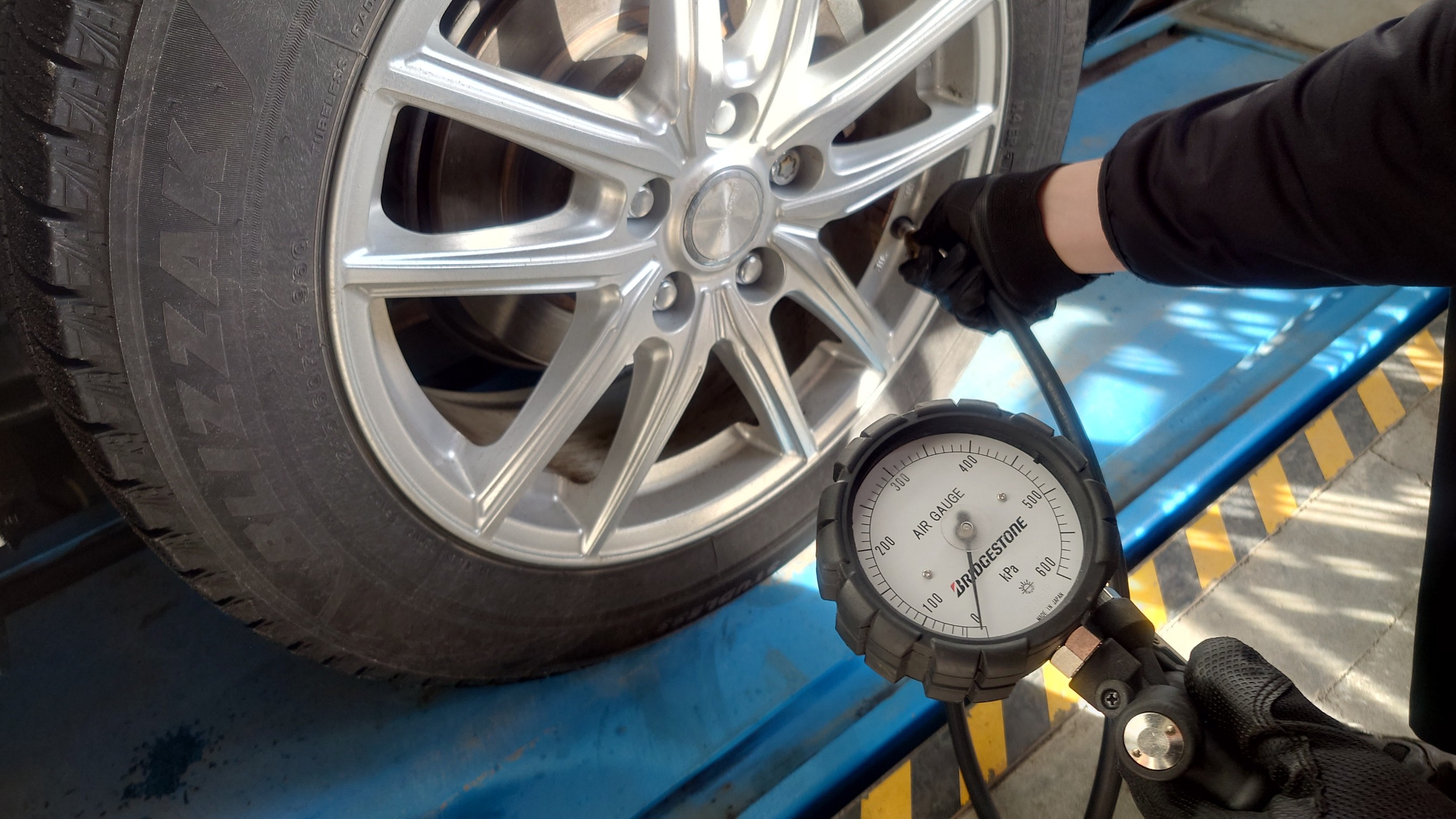タイヤの内圧点検(窒素ガス圧)を