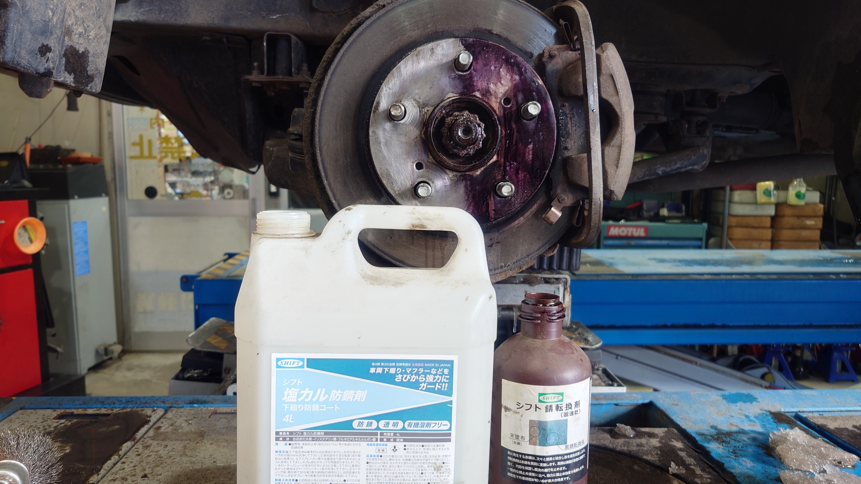 「シフト塩カル防錆剤」塗布後。