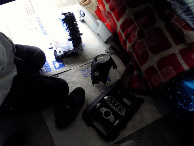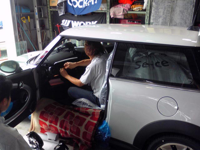 ってことでMINIにナビ付け中の写真です。。