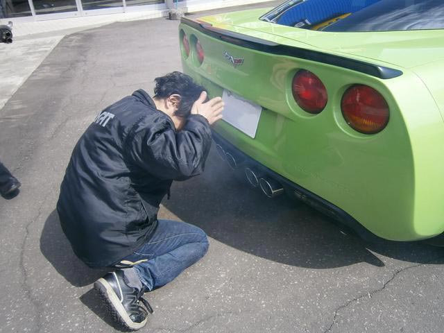 マフラーが焼けだし、大量の煙が...