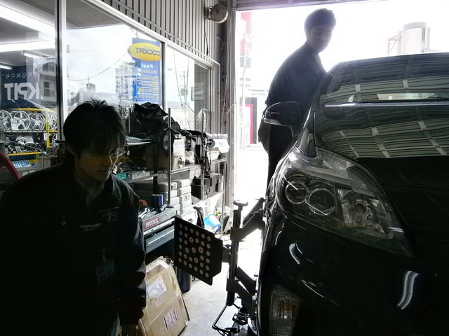 トヨタ プリウスのアライメント開始。。