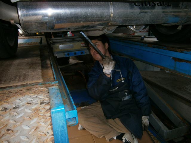 リアを作業中の“まも”