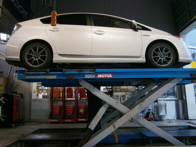 4輪アライメント用のリフトを使って