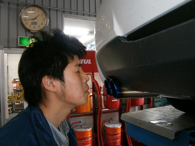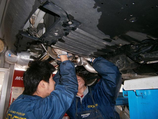 BMW E90へマフラーの取付作業です。。