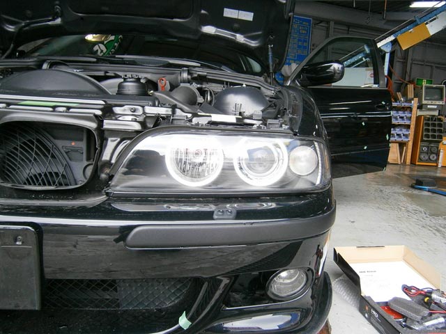 BMW E39 5シリーズは“キセノン”取付作業。。