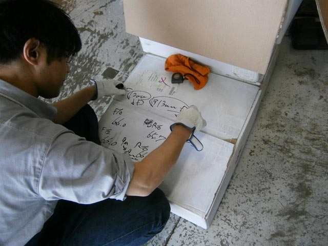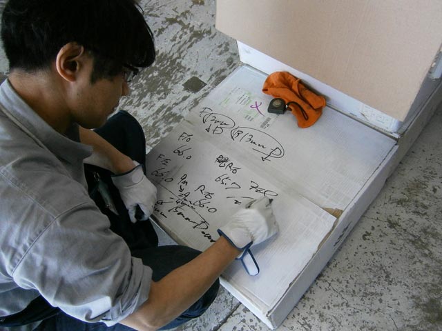 車高を落とす分量を計算している