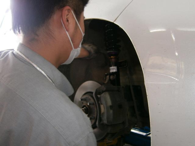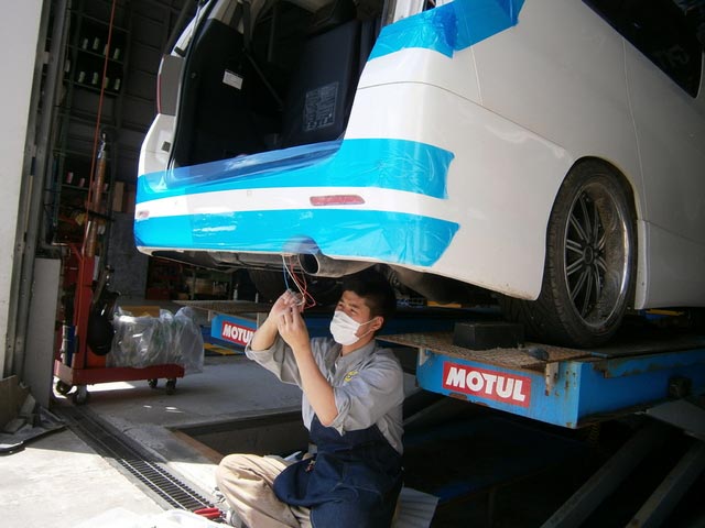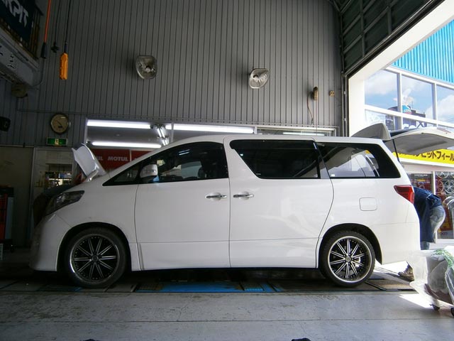 アルファードへ車高調の取付作業です。。