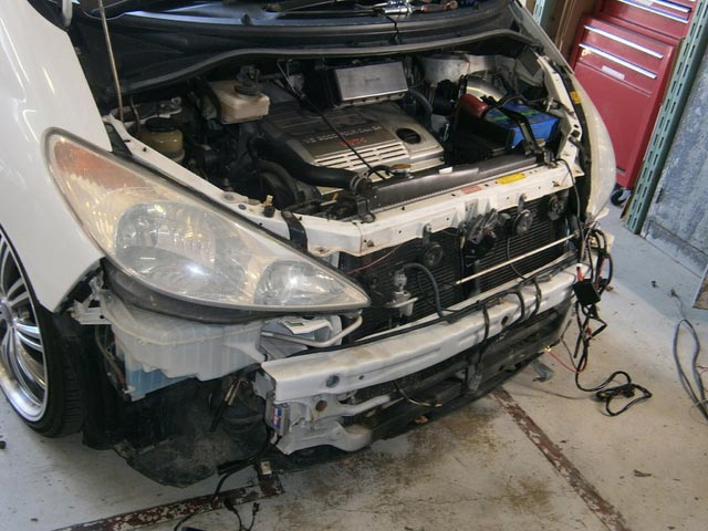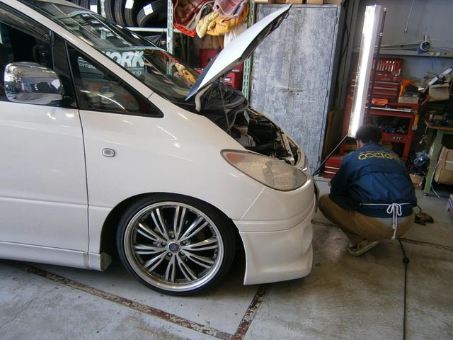 加工が必要なので、バンパーを降ろしての作業です。。