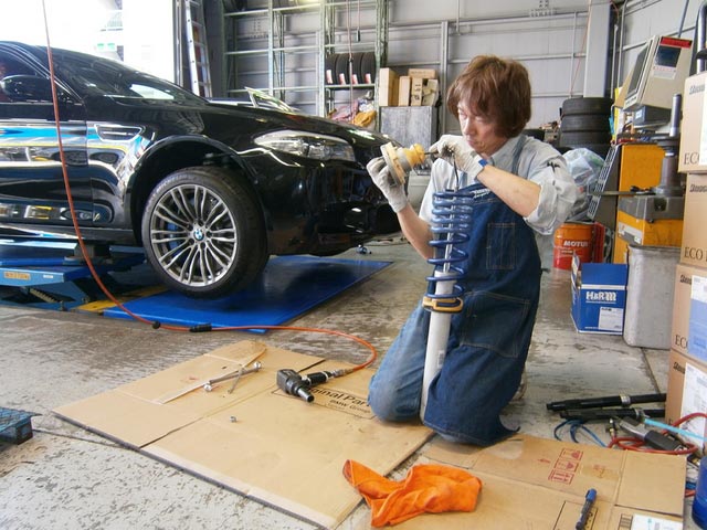 フィールの“BMW師匠”眞崎さん。 作業してますヨ。