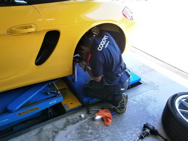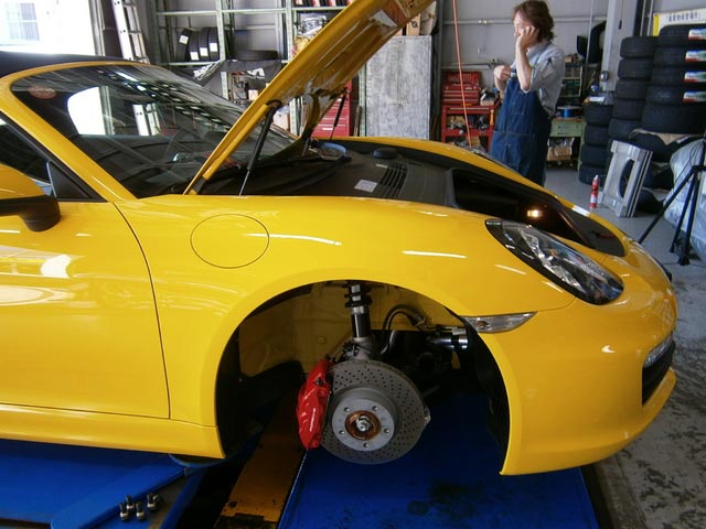 作業の合間に、ボクスターの足回り