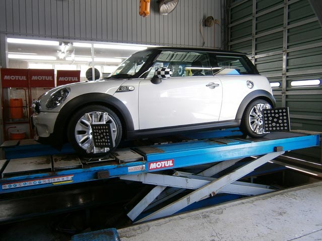 “MINI”の4輪アライメント作業も