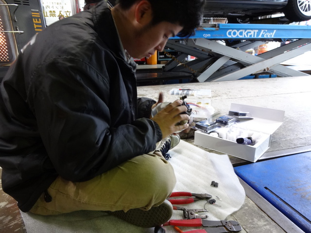 まずは、フォグレンズを外して加工し、バーナーを取付です。。
