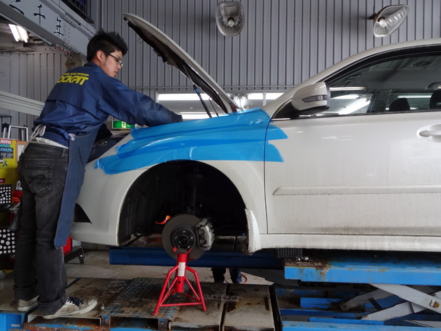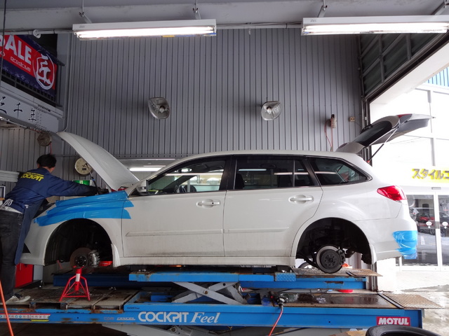 後日に車高の“再設定”と“4輪アライメント作業”を行います。。