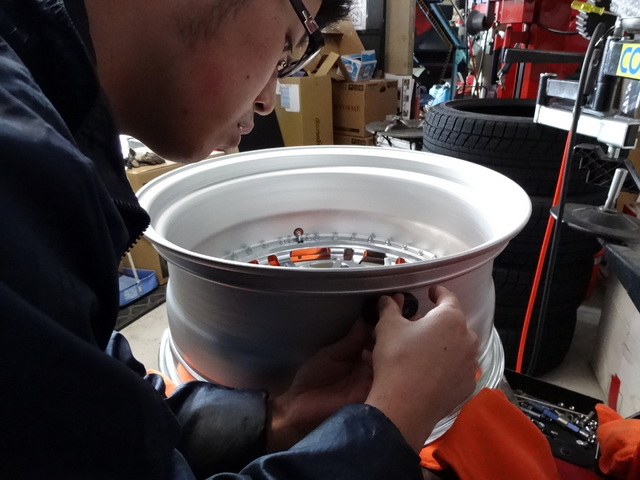 ホイールとタイヤの取付作業。。