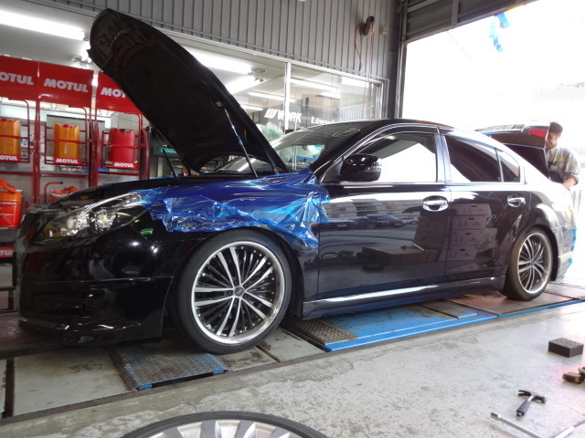 スバル レガシィに車高調の取付。