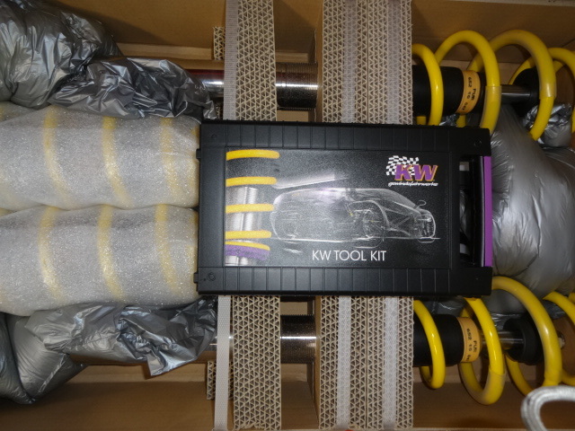 今回は車高をサゲる為、KW(カーヴェー)製 車高調を取付。