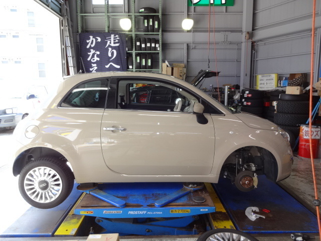 今回はFIAT 500のブレーキパッド交換作業。。