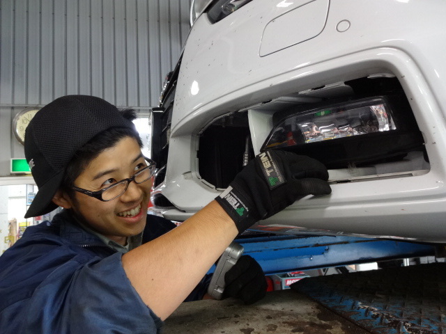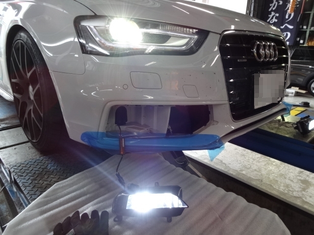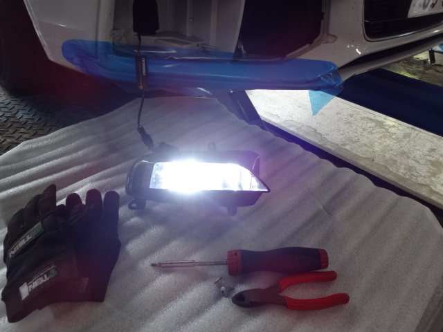 続いてLEDフォグの取付作業。