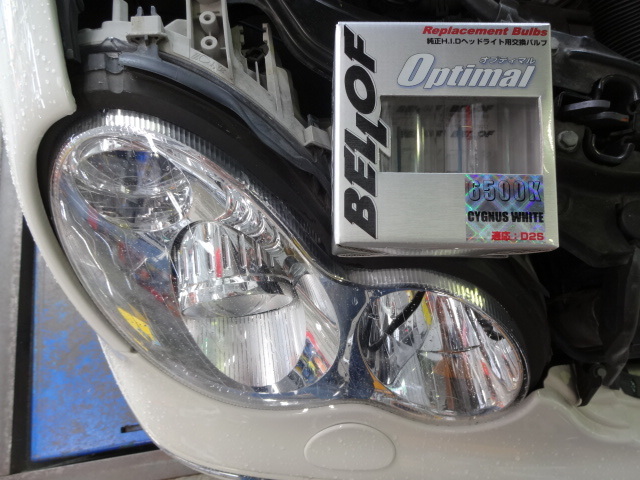 まずはヘッドライトのHIDバーナーを交換。