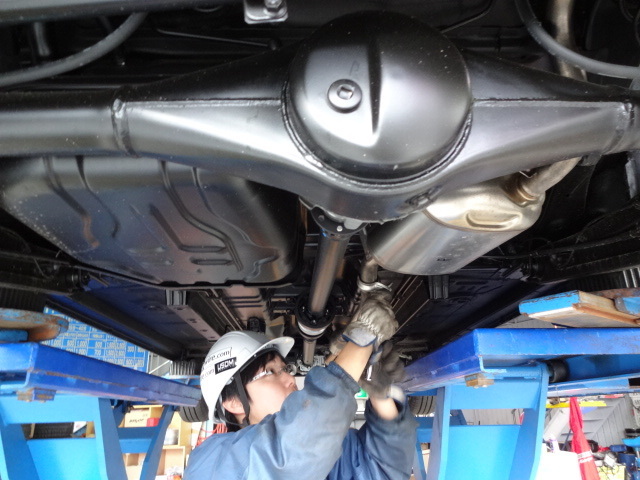 スズキ ハスラーにマフラー取付作業。