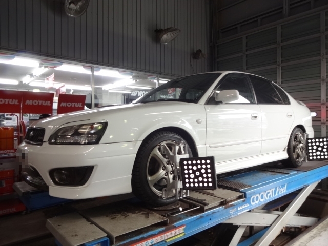 スバル レガシィの車高調整&4輪アライメントと