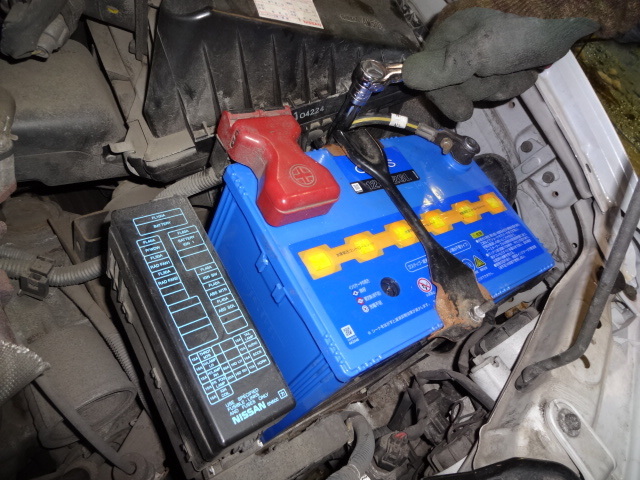 ブルーバード シルフィーのバッテリー交換作業。