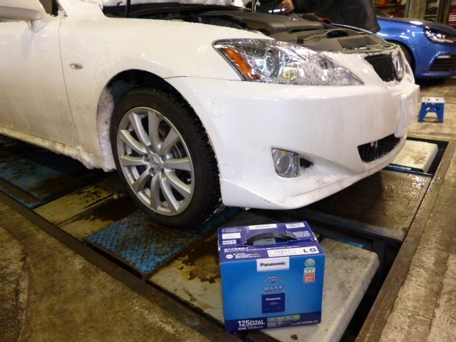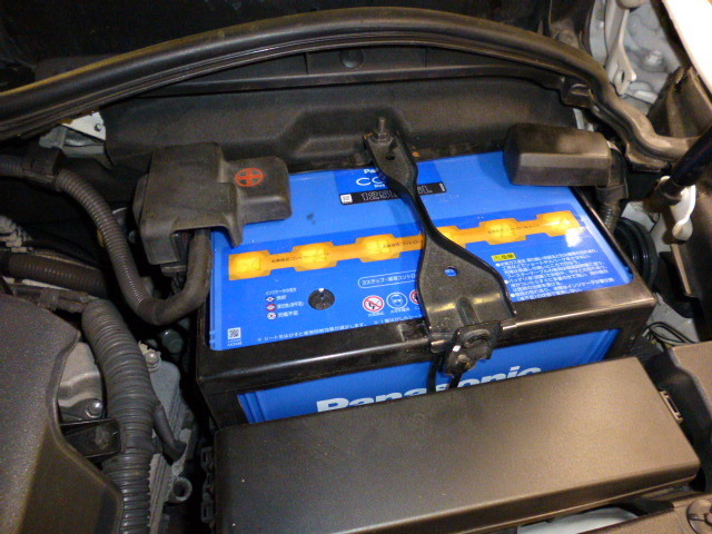 4輪アライメント作業の終了後、バッテリーの交換作業開始。。