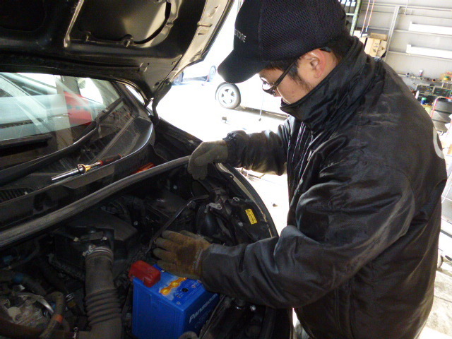 バッテリーの交換作業。