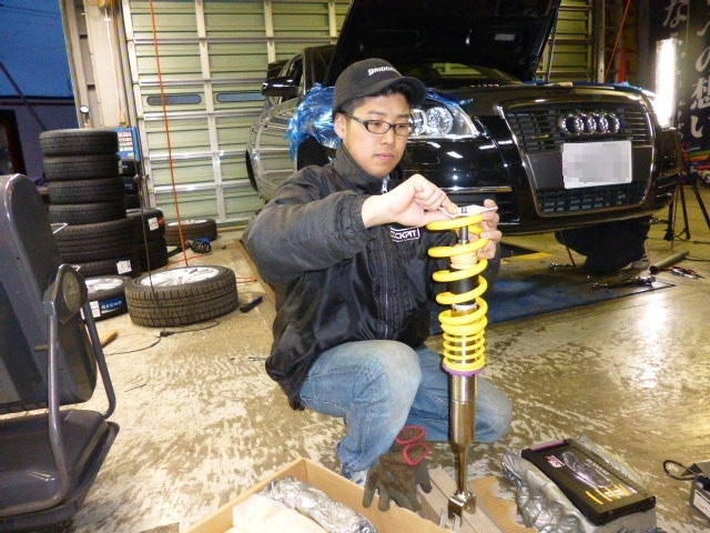 AUDI A6へ車高調取付作業。