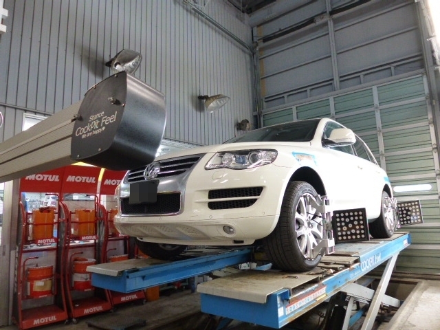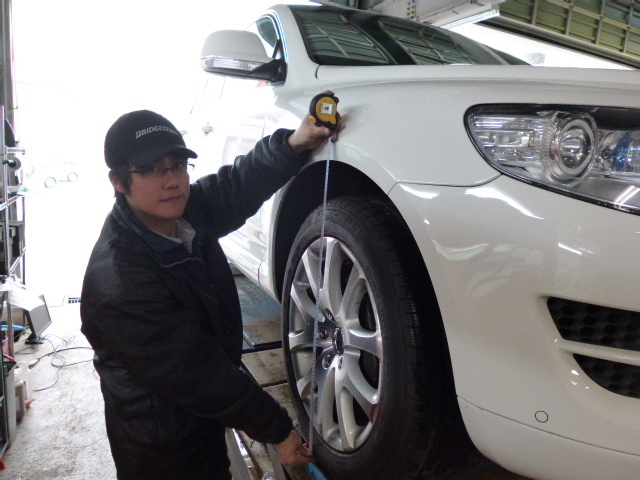 4輪アライメントの測定&調整作業を開始。。
