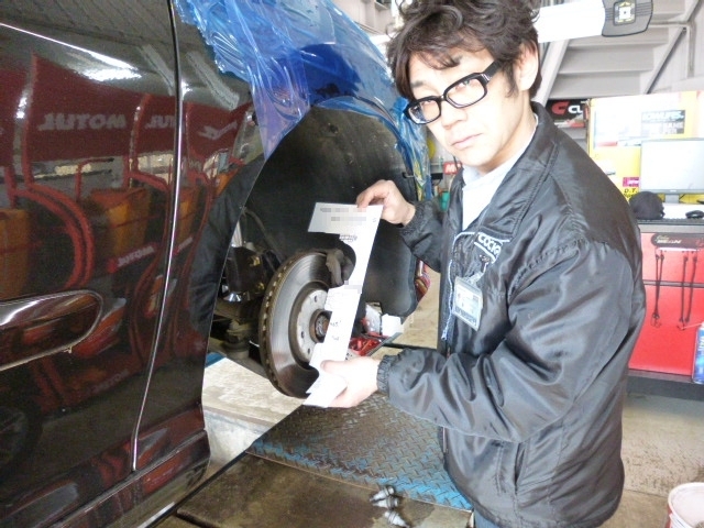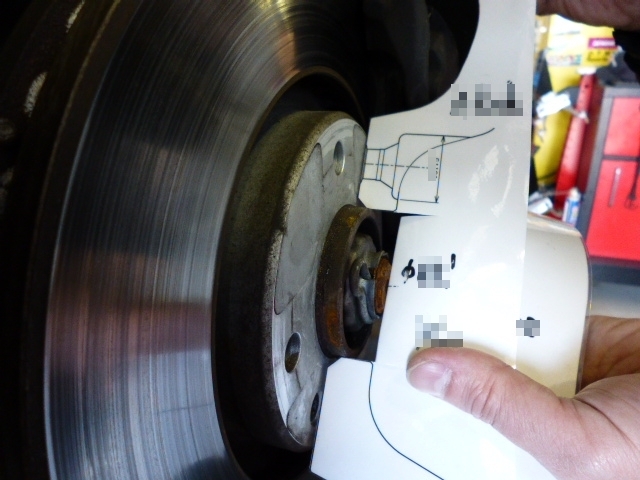 ブレーキ&ハブのクリアランスを計測しています。。