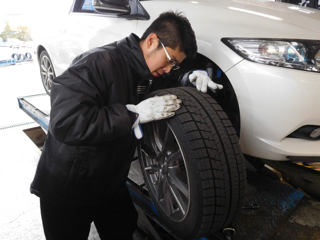 もちろん!“ブリザックVRX”での交換作業。