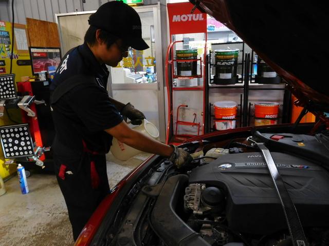 まずは“エンジンオイルフラッシング”作業から開始。