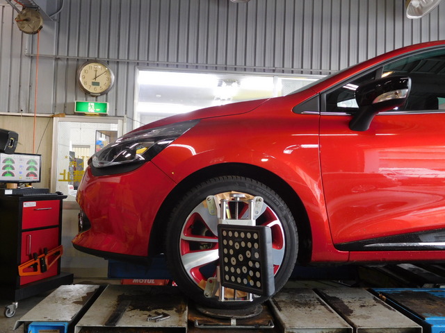 まずは “4輪アライメント”作業から開始。