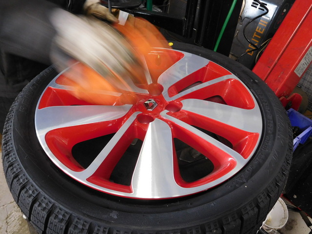 ホイールバランス調整を作業してからルーテシアに取付。
