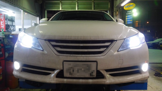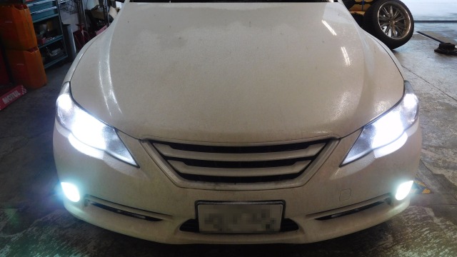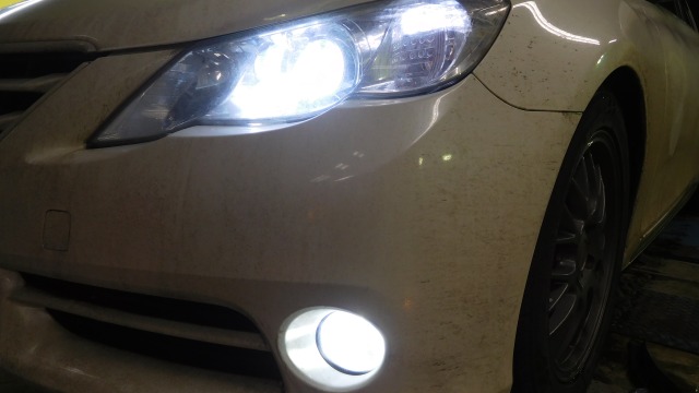 スモールランプ(プロミナ)の交換後で フォグは交換前の写真です。