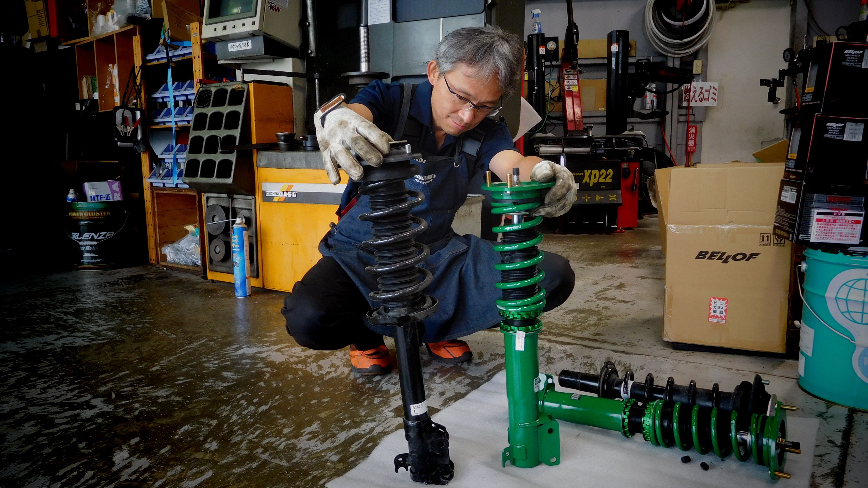 車高調の取付作業と